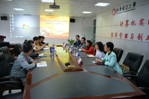 为了进一步加强两校教育教学的深入交流和有效合作,做好江西财大与beat365平台唯一官网应用型本科实践教学,深入了解创业基础教育、创业模拟与实践课程教学软件采购与应用及会计手工处理、会计信息化处理竞赛平台,2016年9月29日在本科部的组织下,工商管理学院副院长武丹、聂群华、会计第一学院余云宜、朱燕、本科部朱顺熠等老师及准备参加省级会计技能大赛的学生一道前往江西财经大学计算机实践教学中心(经济管理与创业模拟实验中心)开展调研交流。