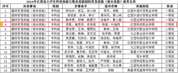 近日,从江西省大学生竞赛网获悉,beat365学子在由江西省教育厅主办,江西外语外贸职业学院承办的2016年江西省大学生省赛报关赛项中喜获团体二等奖1项,团体三等奖1项。