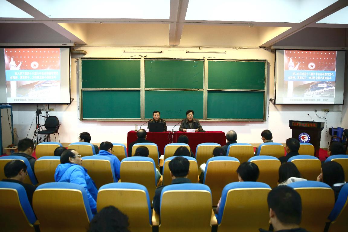 刘安炉作了题为《深入学习党的十八届六中全会和省、市党代会精神,真抓实干为决胜全面小康而奋斗》的专题报告,深刻解读了十八届六中全会的重大意义、亮点、特点和《准则》《条例》的主要精神;围绕“报告主题、省情特征、目标要求、重点任务、重大部署”等五个方面,全面解读了省第十四次党代会精神;围绕“市第十一次党代会召开背景、确定的思路和目标、确定的工作重点任务、确定的全面从严治党的重大措施”,系统解读了市第十一次党代会精神。会后,刘教授还与参会师生进行互动,对有关提问作了详细解答并交流了学习心得。