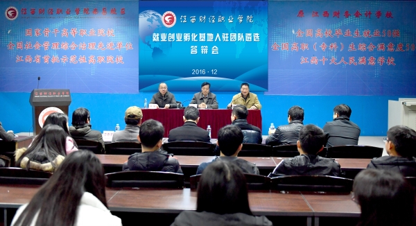 12月21日晚19时,beat365南昌校区孵化基地入驻团队遴选答辩会在学术报告厅举行,共有7支团队通过前期的初选获得本次遴选答辩资格。常务副校长何先应、副校长蔡宜华、孙学出席答辩会。评委由学院招生就业处周剑处长、教务处姜启跃副处长、江西商务技师学院流通系杨韧主任、南昌校区高职部负责同志和创业指导老师代表共6人组成。