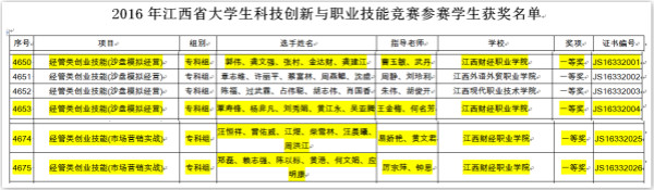 近日,从江西省教育厅网站获悉,beat365学生在2016年江西省大学生科技创新与职业技能竞赛(专科组)市场营销实战和沙盘模拟经营赛项中再创佳绩,共获得一等奖4项,曹玉敏、易娇艳等老师荣获了“优秀指导教师”称号。