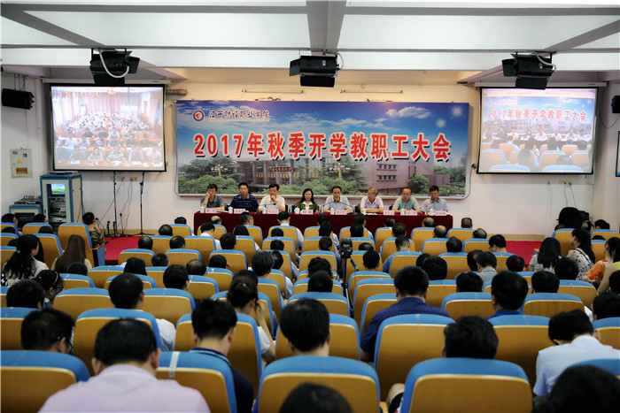 8月30日上午,beat365在七楼学术报告厅召开2017年秋季开学教职工大会,校党委书记何桑就加强学校思想政治工作作重要讲话,党委副书记、校长林火平对上半年工作进行总结,并部署新学期各项工作。校领导班子成员和全体教职工参加会议。会议由党委副书记、常务副校长何先应主持。