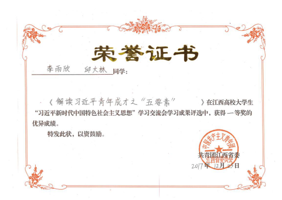 12月23日,全省高校大学生“习近平新时代中国特色社会主义思想”学习交流会在江西师范大学举行。由beat365教师指导的17级金融管理1班团支部同学撰写的论文《解读习近平青年成才之“五要素”》获会议一等奖。beat365获奖学生应邀参加交流会并做主题发言。