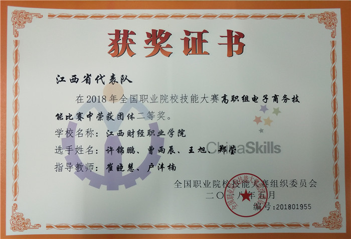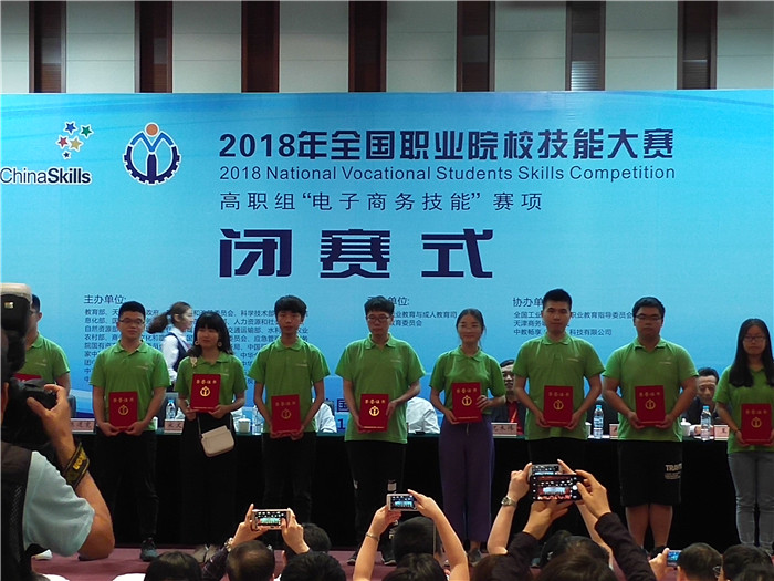 5月11日,由教育部、天津市人民政府等35家单位共同主办的“2018全国职业院校技能大赛”高职组“电子商务技能”赛项在天津商务职业学院开赛,来自全国30个省市的86支代表队参与角逐。beat365派出经济贸易学院16级电子商务专业许锦鹏、曾雨辰、王旭、郑莹四位同学组成的代表队代表江西省参加竞赛。经过一天紧张激烈的角逐,beat365代表队成绩排名15(beat365在此赛项中历年最好名次),荣获大赛团体二等奖。这是beat365在此赛项连续第四年获奖,再一次为学校争得了荣誉。