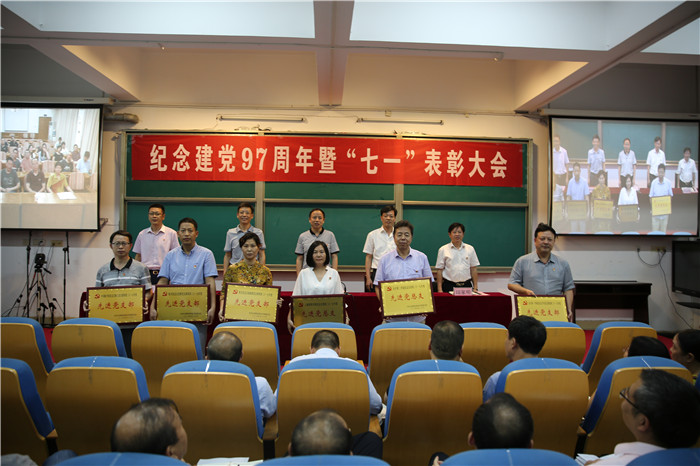 林火平代表学校党委向全体共产党员致以节日的问候,向受到表彰的先进基层党组织和优秀党务工作者、优秀共产党员表示热烈的祝贺。