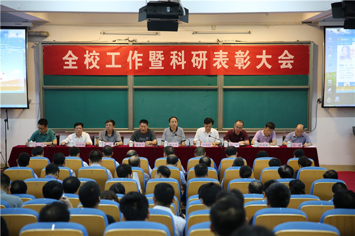 7月6日下午,全校工作暨科研表彰大会在综合楼学术报告厅举行。校党委书记林火平和领导班子成员出席,全体教职员工参加大会,会议由校党委副书记、常务副校长何先应主持。