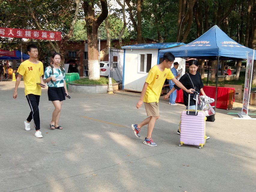 在校内服务的志愿者们也早早来到了校级学生组织服务处、校门口以及各个专属服务点等待着新生和家长的到来。志愿者们热情地迎接每一位新生,帮助新生提行李、找学院,全程伴随,忙的不可开交。为了提升服务质量,志愿者们为新生及家长提供“一对一”式的温馨服务,在迎新服务工作最繁忙的时刻,志愿者们不惧高温、毫不松懈,热情耐心的为学生及家长进行答疑解惑,他们的努力付出获得了大家的一致认可。