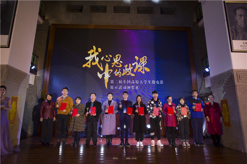 11月24日晚,第二届“我心中的思政课”全国高校大学生微电影展示活动颁奖礼在武汉大学老图书馆隆重举行,教育部社科司教学与出版处处长陈睿、湖北省教育厅思想政治教育与社会科学研究处处长何泽云、武汉大学党委副书记沈状海出席。展示活动共评出特等奖5部、一等奖10部、二等奖20部、三等奖30部、优秀奖171部,单项奖4个,组织奖3个,来自全国66所高校近150名获奖团队代表参加颁奖礼。
