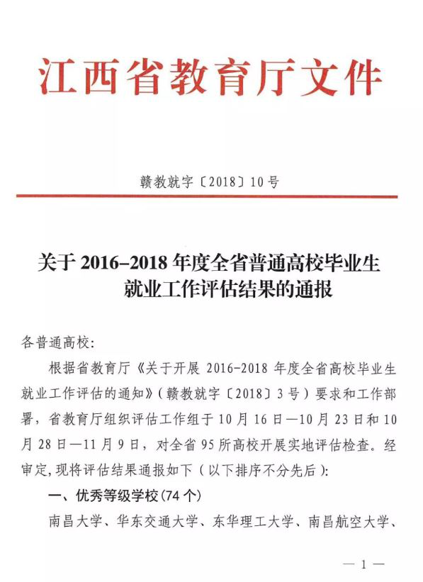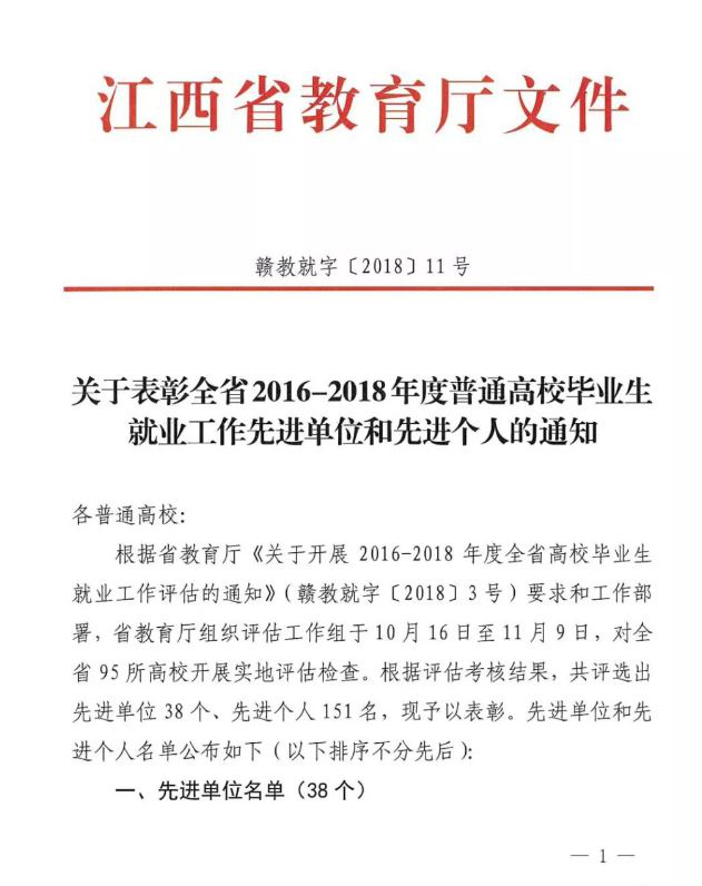近日,从江西省教育厅《关于2016-2018年度全省普通高校毕业生就业工作评估结果的通报》(赣教就字[2018]10号)、《关于表彰全省2016-2018年度普通高校毕业生就业工作先进单位和先进个人的通知》(赣教就字[2018]11号)中获悉,beat365在江西省2016-2018年度普通高校毕业生就业工作评估中被评为“优秀等级学校”,并荣获“就业工作先进单位”称号,这也标志着beat365连续15年获此殊荣。