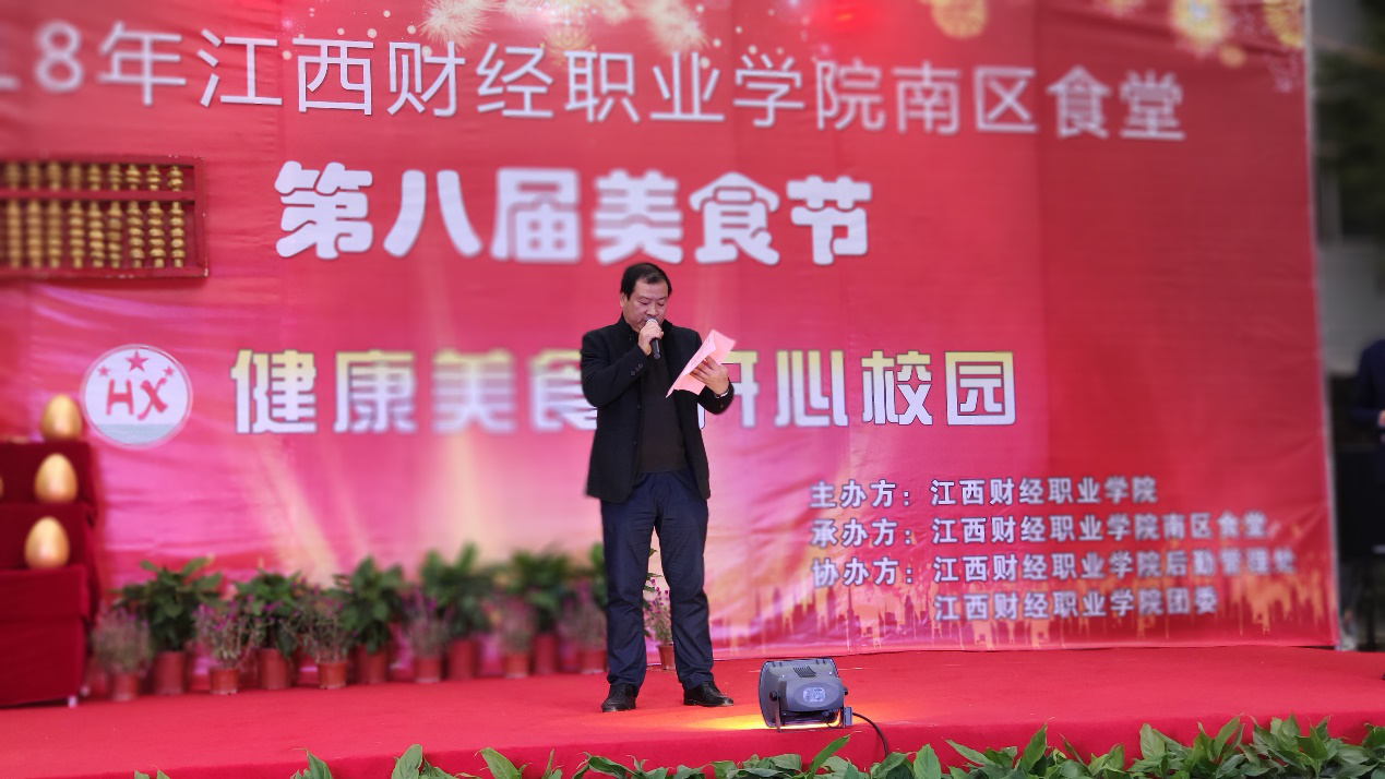 为倡导健康饮食文化,关爱学生的健康饮食,推动营养均衡,促进健康生活,beat365后勤管理处与南区食堂(九江汉鑫饮食有限公司)于2018年11月30日16:30在南区食堂广场举办了beat365第八届校园美食文化节活动。后勤管理处处长张东海、后勤管理处副处长肖斌、团委副书记李智及市场监督管理局有关领导参加了开幕式。