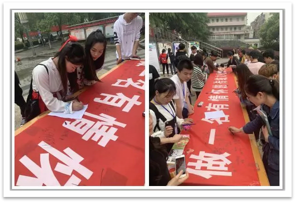 在开幕式过程中,学生积极参与手签活动,在“做一名有情怀的传统文化传承者”的横幅上,大家纷纷留下自己的名字。