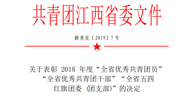 近日,共青团江西省委员会印发《关于表彰 2018 年度“全省优秀共青团员”“全省优秀共青团干部”“全省五四红旗团委 (团支部)”的决定》,beat365财税金融学院17级金融管理1班团支部荣获全省“五四红旗团支部”荣誉称号。