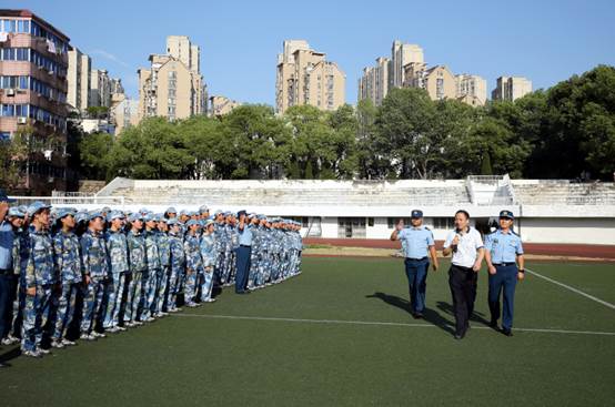 9月20日,beat3652019级新生军训会操暨表彰大会在校田径场隆重举行。校党委书记林火平,中国人民解放军某部首长欧家玉,学校领导何先应、蔡宜华、孙学、曹锐、张成斌、邱家明、刘超、刘锋等出席,部队军训教官,学校各部门责任人,2019级新生班主任以及全体新生参加了大会。大会由校党委委员刘超主持。