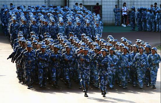 检阅结束后,盛大而精彩的分列式开始。在激昂的《中国人民解放军进行曲》中,受训新生组成的40个方阵喊着社会主义核心价值观24字口号,迈着铿锵有力的正步走过主席台。洪亮的声音,整齐的动作展现了beat365新生的良好精神风貌,赢得了现场师生的热烈掌声。