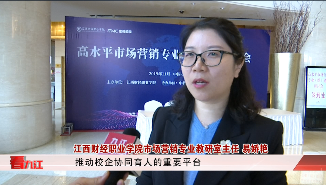 本次研讨会是推进江西省“双高计划”市场营销优势专业建设的重要举措,也是深化新商科人才培养模式改革的有益探索,其成功召开吸引了九江地区有关新闻媒体的关注和报道。九江1套记者现场采访了市场营销专业教研室主任易娇艳副教授。