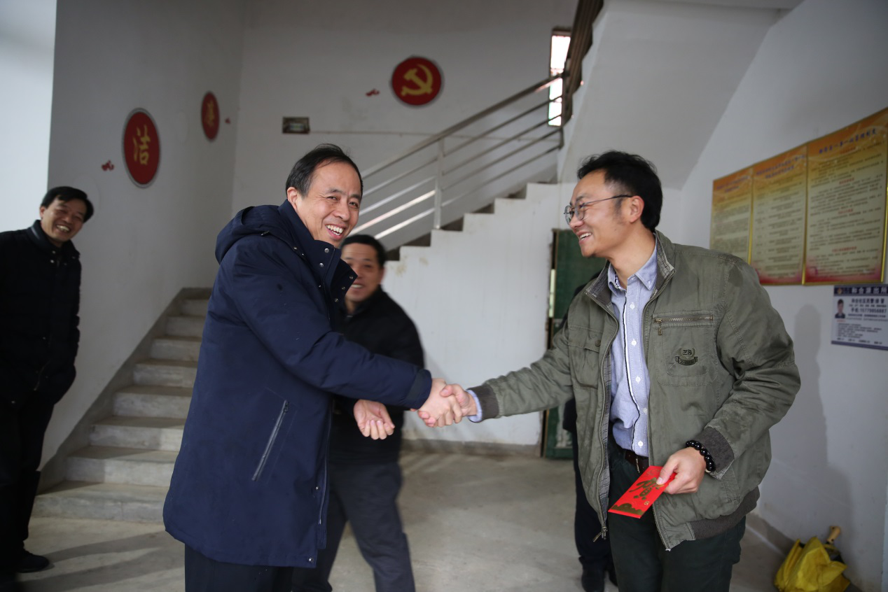 为贯彻落实党的十九大精神和省市有关脱贫工作会议精神,充分体现党和政府对贫困户和基层一线扶贫干部的关心关爱,切实帮助贫困户过上一个平安祥和的新春佳节。2020年1月9日,校党委书记林火平一行冒着大雨到beat365帮扶点--都昌县和合乡桥岭村进行春节走访慰问,校党委副书记、常务副校长何先应陪同走访。