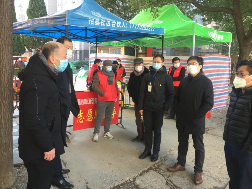 2月17日上午,学校党委委员、疫情防控工作领导小组副组长邱家明、刘超、刘锋等3位校领导和后勤服务处、宣传统战处负责人到beat365文明帮建单位湖滨社区调研抗击新冠肺炎疫情联防联控工作。