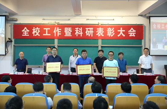 会上,校领导为获奖的先进集体进行了颁奖。