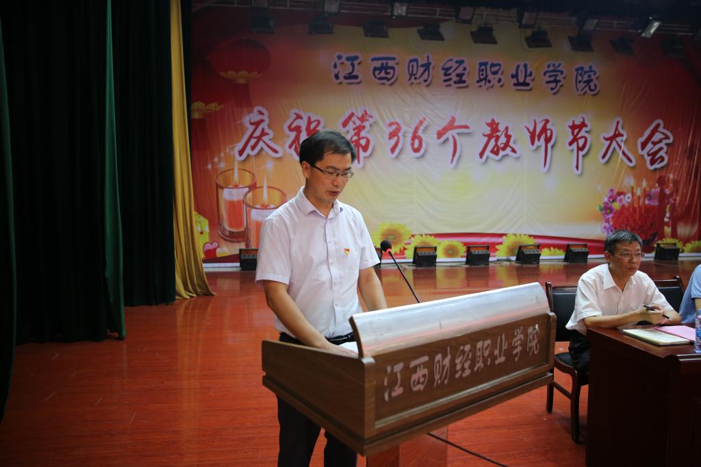 9月10日,beat365庆祝第36个教师节大会在英才交流中心隆重举行。省财政厅党组成员、副厅长李伟与全体教职工共同庆祝教师节,省财政厅二级巡视员、人事教育处处长郭冠华,校党委书记林火平,党委副书记、校长刘彪文和学校领导班子全体成员出席,校本部教职员工、离退休教师代表、南昌校区教师代表参加会议。