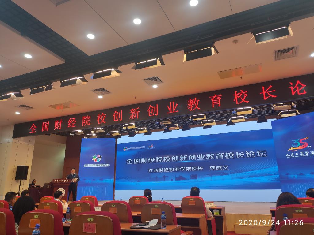 9月24日,全国财经院校创新创业联盟2020年会暨创新创业教育校长论坛在山东工商学院举行。来自上海财经大学、吉林财经大学、浙江财经大学等37所高校的领导和师生、联盟理事单位代表等近300人参加大会。校党委副书记、校长刘彪文出席开幕式暨校长论坛。山东工商学院副校长刘向锋主持了开幕式。