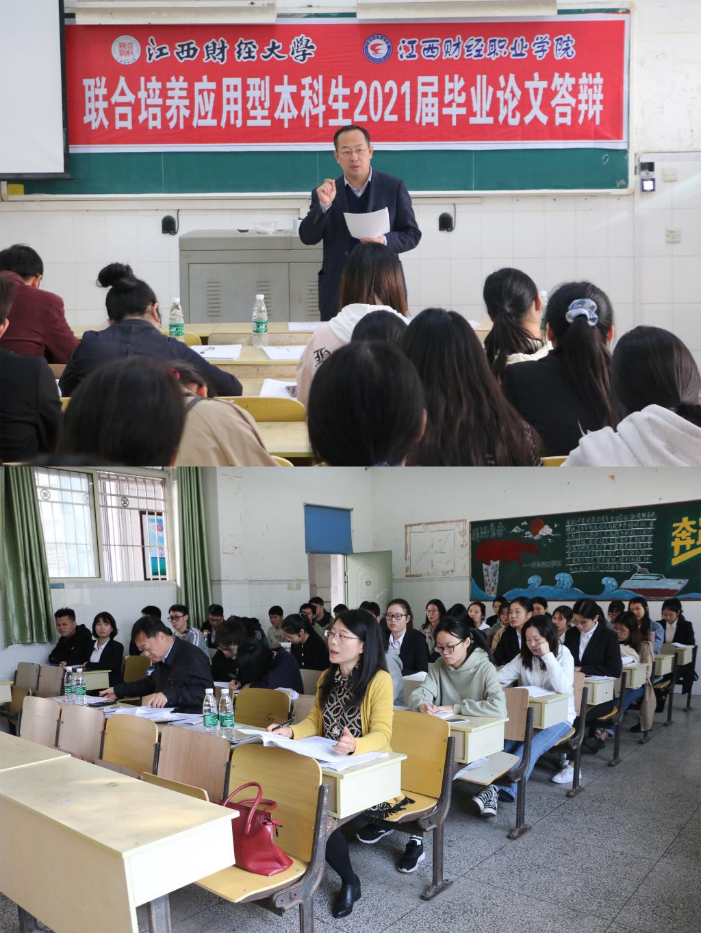 2020年11月8日,江西财经大学、beat365平台唯一官网联合培养应用型本科生2021届毕业论文答辩分别在教学楼214、215顺利完成,97位学生顺利通过答辩。答辩小组由江西财经大学会计学院副院长李宁、吉伟莉、师华和李世刚四位老师组成,论文答辩分两组同时进行。本科部老师全程参与,并负责组织协调等工作。