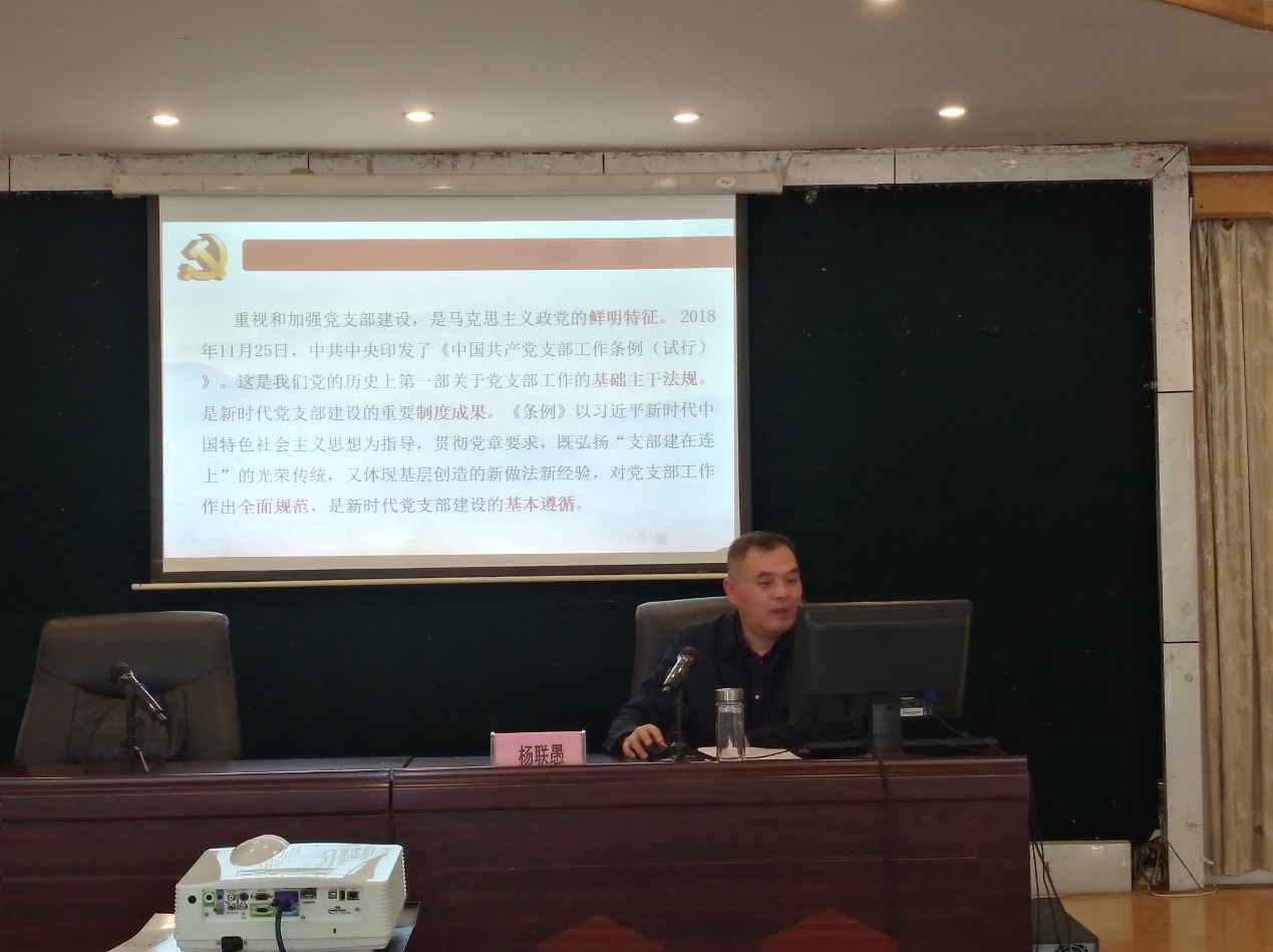 省委教育工委秘书处杨联愚处长对《中国共产党支部工作条例(试行)》进行了解读,深入浅出地阐述了工作条例对于突出党支部建设的重要性、大背景、新要求和好方法,并结合高校党建工作实际,分析了高校基层党组织建设的新形势、新要求、新任务。