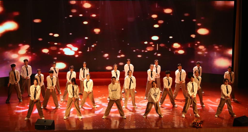 下篇“展望”,勾画了学院未来发展的壮美蓝图。杂技《步步高》、诗朗诵《青春财院》演绎了财院儿女以青春报效祖国的坚毅、民族舞《水之灵》、街舞《龙拳》展现了财院学子热情奔放的青春风采、刘彪文校长携教职工“金声”合唱团演唱的《我和我的祖国》《再一次出发》将晚会推向最高潮。