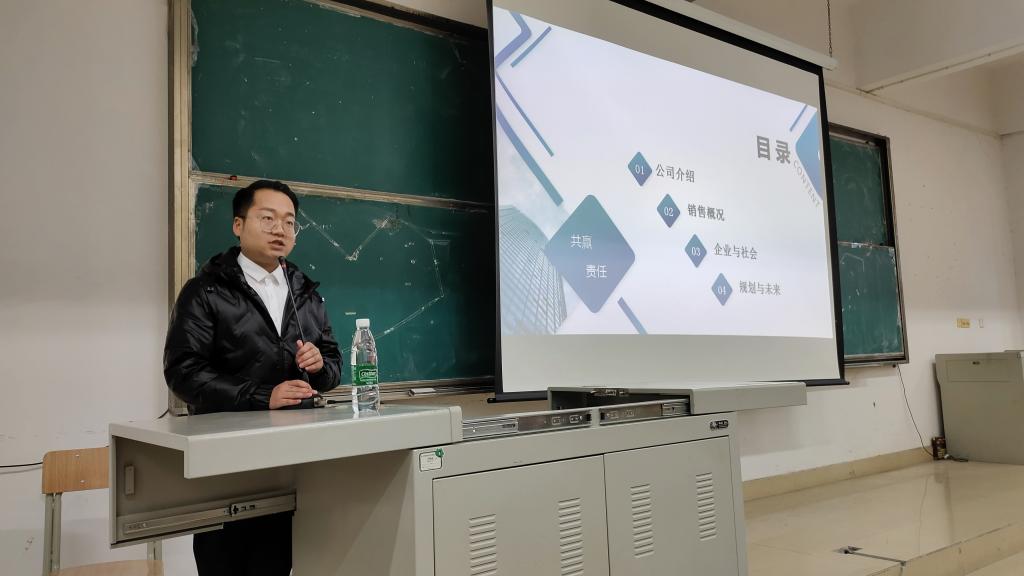 首先,北京博导前程信息技术股份有限公司1+X项目中心秦刚强主任做主题为《1+X电子商务数据分析职业技能等级证书体系介绍》讲座。接着四位优秀校友代表安徽玖富盈和贸易有限公司总经理徐飞;九江浔音文化传媒有限公司总经理成龙;九江宏图财务有限公司总经理王缘缘;拼多多南昌分公司销售经理郑文轩分别进行创业工作经验分享。