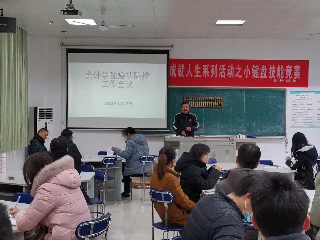 为贯彻落实《九江市关于做好2021年春节期间新冠肺炎疫情防控工作的通告》、学校新冠肺炎疫情防控推进会以及学校领导讲话精神,1月12日下午,会计学院在东区一楼实训室召开疫情防控工作会议,落实具体工作要求。会议由党总支书记张家顺主持,会计学院全体教职工参加会议。