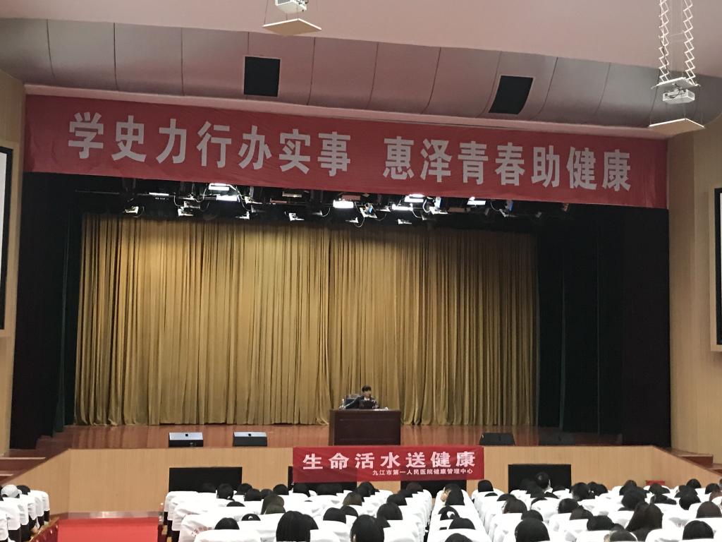 5月20日晚19:00-21:00,由外国语学院与经济贸易学院、财税金融学院联合举办的以“学史力行办实事,惠泽青春助健康”为主题的女性安全卫生知识讲座在英才交流中心举行。此次讲座特别邀请了九江市第一人民医院的吴剑兰医生和汪裴医生就“大学生生殖健康教育和防疫知识”对全体女生进行宣讲。外国语学院党总支书记熊水金,经济贸易学院党总支书记宋自奋,财税金融学院党总支副书记王怡然及三个学院的老师们参加了此次讲座。