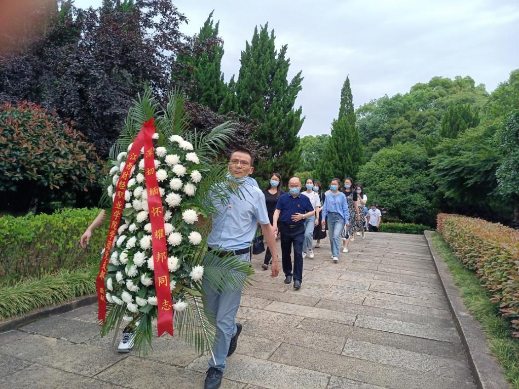 支部全体党员排着整齐的队伍登上台阶向胡耀邦墓敬献花篮,并在雕像前三鞠躬,表达了对这位伟大的无产阶级革命家、政治家的深切怀念和崇高敬意。