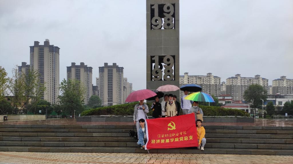 为弘扬九八抗洪精神,提升经贸学院支部党员的党性修养,2022年10月16日下午3点,经济贸易学院教工党支部新教师、学生党支部党员赴九江抗洪广场纪念馆开展“红色地标走读”活动。