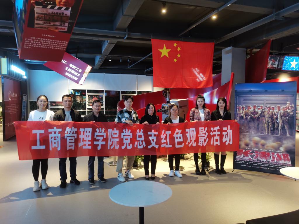 为扎实有效推进党史学习教育,丰富党史学习教育形式,10月12日晚工商管理学院党总支组织全体教师党员,前往红旗电影院观看电影《长津湖》。