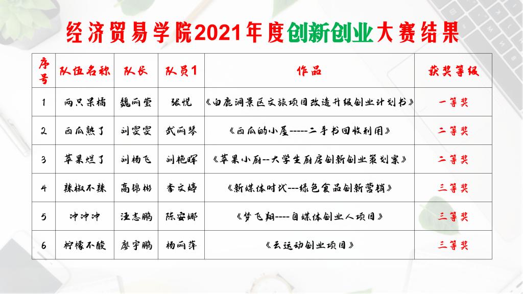 创业是时代的主旋律,为引导学生了解创业知识,激发创业热情,培养同学们创业素养,beat365于2021年10月14日下午4:30在教学楼203教室举办首届经济贸易(旅游管理)学院2021年度创新创业大赛。