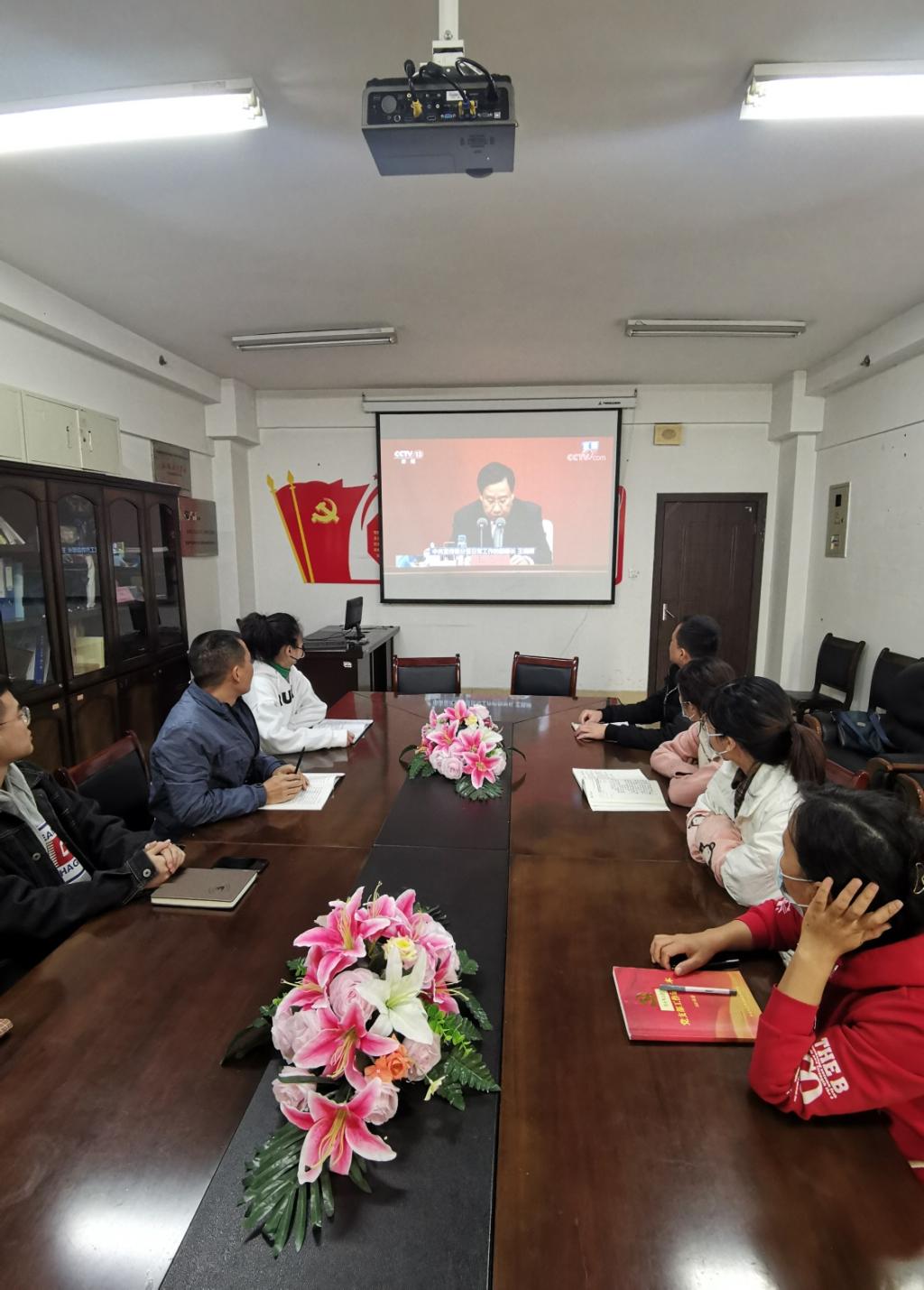 2021年11月12日上午10时,中共中央举行新闻发布会,介绍党的十九届六中全会精神。工商管理学院党总支第一时间组织全体党员在综903会议室集中收看新闻发布会直播,认真学习领会十九届六中全会精神。