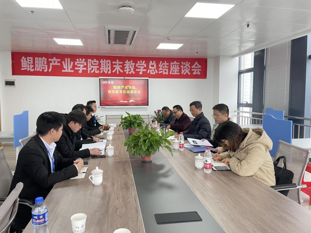 岁序更替,华章日新,1月5日,在科技城鲲鹏产业学院会议室,信息工程学院组织召开鲲鹏产业学院期末教学总结座谈会。参加会议的有信息工程学院院长易文泉,教务处副处长龚少卿,信息工程学院副院长陈荣华,各专业教研室主任,鲲鹏产业学院执行院长陈康,教学总监刘修阳及各实训方案主讲教师代表等。