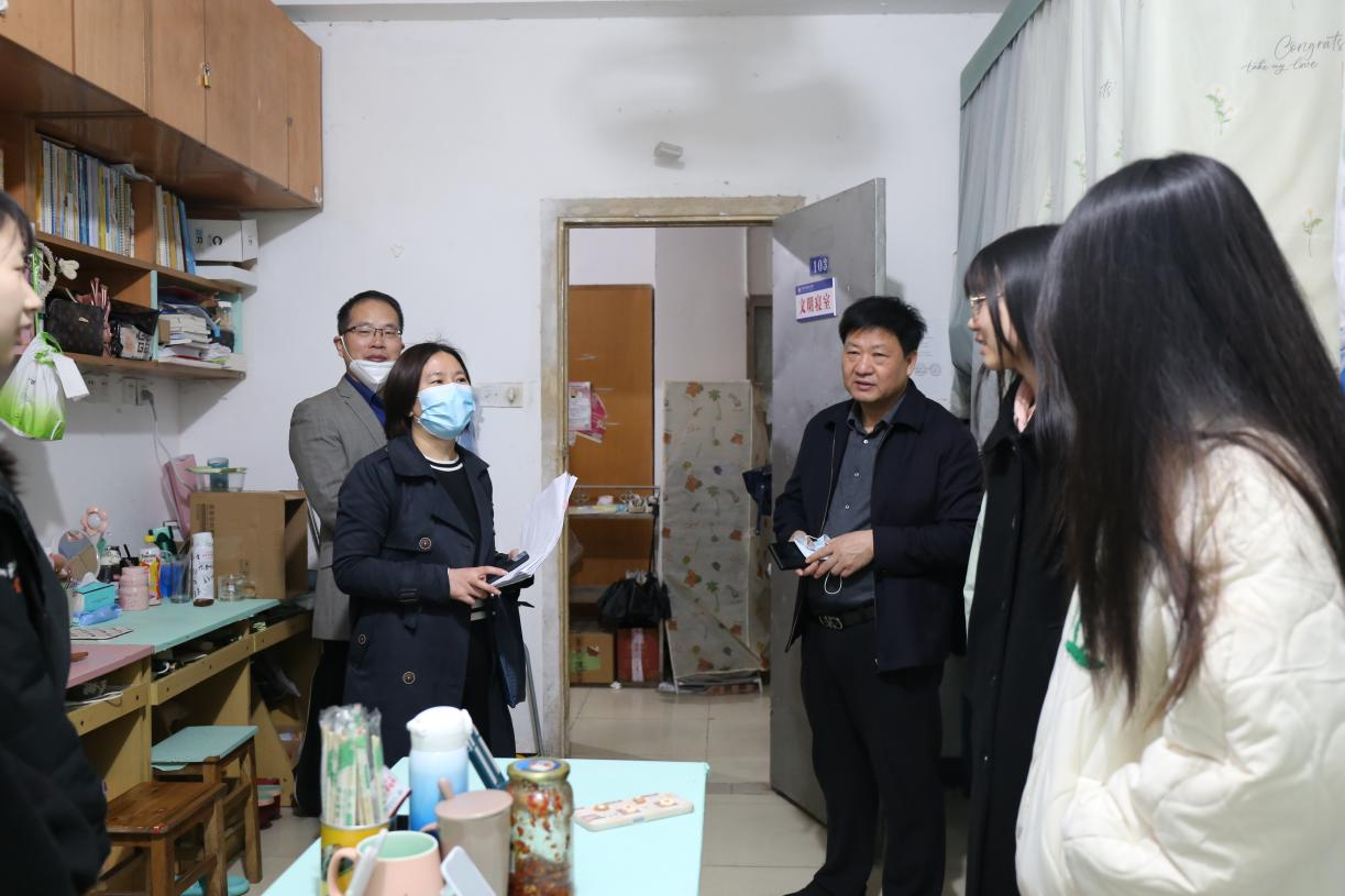 4月5日上午,beat365分管领导、校党委副书记、校长刘彪文深入北四、北七、南二、南五、东一和东三学生宿舍看望学生并重点了解疫情防控期间学生在校生活、学习和思想状况,学院党总支书记武丹、院长冯弋江陪同,学院全体班主任参加巡查。