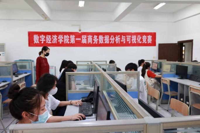为增强学生对《商务数据分析与应用》专业的认知,提高学习积极性,丰富业余生活,数字经济学院于2022年5月27日下午在综合楼605、608教室举办第一届《商务数据分析与可视化》竞赛,20级会计信息管理及21级商务数据分析与应用等专业近70余名同学参加了比赛。