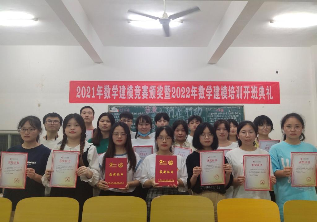 最后,主持人宣布为2021年全国大学生数学建模竞赛获奖学生颁奖,在一阵阵热烈的掌声中,八支建模队的24名同学上台领奖,与会领导和老师为获奖学生颁发了获奖证书。
