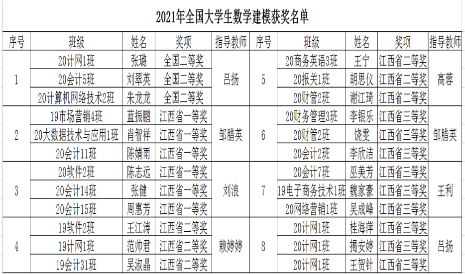 附:2021年数学建模竞赛获奖名单