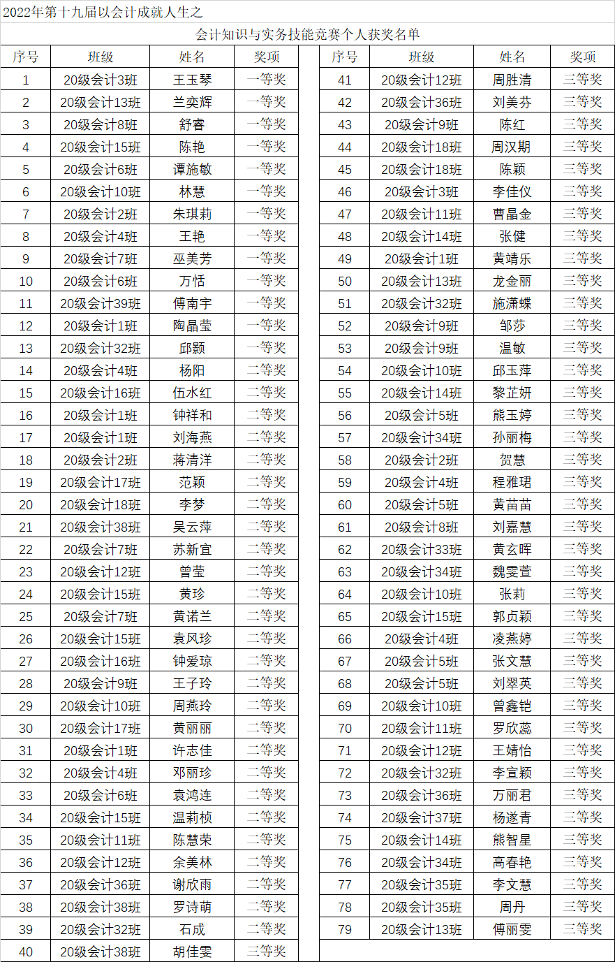 会计知识与实务技能竞赛主要考察企业财务会计常见业务的会计处理,全面、深入地考核了同学们对会计理论知识与实务操作相结合的综合能力,是“以会计成就人生”系列活动的重要赛事之一。各班高度重视,认真组织,选派精英选手参赛。比赛中,同学们沉着冷静,审慎思考,仔细作答,充分发挥了个人的专业技能水平,展现了beat365学生良好的专业知识素养和扎实的实务操作能力。经过90分钟的激烈比拼,20会计1班、15班两个班级代表队获得团体一等奖,20会计4班、6班、10班三个班级代表队获得二等奖,20会计12班、9班、38班、13班、5班、3班、17班等7支班级代表队获得团体三获奖;20会计3班王玉琴等79名同学获得个人单项奖励。