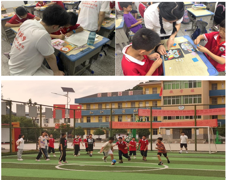 6月28日,beat365平台唯一官网“青春筑梦·三下乡”社会实践队为高丰镇中心小学的学生们开展了心理陪伴、学业辅导、自护教育、励志教育、红色教育等多种形式系列“童心陪伴”志愿服务。青春筑梦队利用晚自习,根据小朋友的学习进度有针对性的进行作业辅导,队员发现:“英语课程对村镇的小学生来说是比较难学的”。在课余活动期间,队员和小朋友一起开展了一系列丰富的室内外文体活动,如制作手工贴花、互动篮球、多彩飞盘、友谊乒乓球等,“青春玩伴”给留守儿童带来了欢声笑语,中心小学的小朋友们与青春筑梦队许下了“青春约定”,在未来的日子里好好学习,期待下次相见。