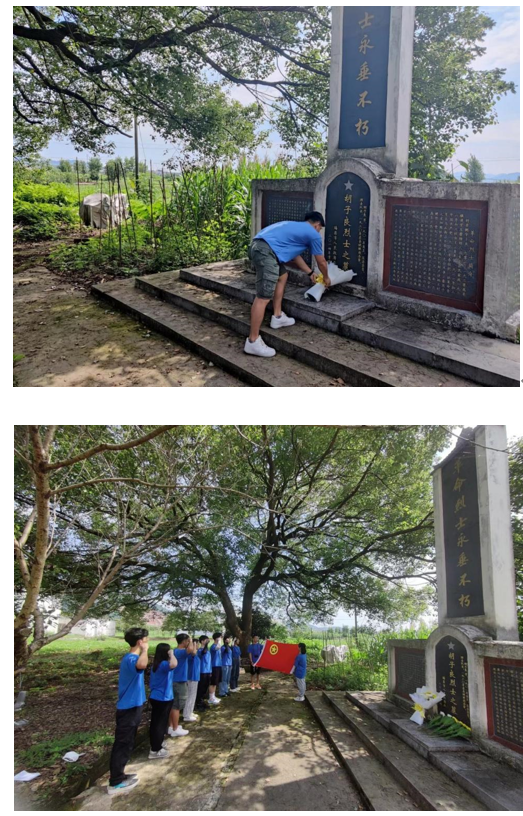 “追寻红色足迹,缅怀革命先烈”,为继承革命先烈遗志,弘扬革命烈士精神。6月25日,青春筑梦社会实践队前往瑞昌市高丰镇胡子良烈士墓进行祭扫,面对着革命烈士的墓碑,队员们怀着对革命先烈们的崇敬和缅怀之情,向革命烈士敬献花束,庄重地为烈士默哀鞠躬,并于墓碑前重温入团誓词,铿锵有力的入团誓词响彻了每一个角落。