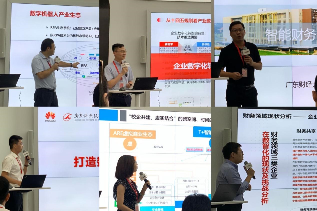 上午,华为数字机器人产教融合交流会由华为数字机器人教育行业总监韩江主持,在华为数字展厅的会议中心召开。首先,广东翰智数字科技有限公司专家顾问翁义春作《RPA数字人才培养助力数字经济发展》的主题报告,从行业、企业以及应用的角度探索未来RPA应用场景与人才培养需求。接着,华为技术有限公司与广东翰智数字科技有限公司举行数字机器人生态合作签约仪式。随后,广东财经大学智能财会管理学院院长陈建林、广东科学职业技术学院人工智能学院科技与合作部主任陈宗仁与广科院会计信息管理专业群带头人刘捷萍分享了RPA在学院建设中的人才培养实践与产教融合探索。最后,华为数字机器人企业财务领域总监周德伦为大家介绍了华为数字机器人产业应用案例分析。