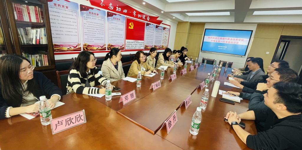 座谈会上,国际教育学院副院长杨瑞(主持工作)对来访客人表示热烈欢迎,对江西现代职业技术学院老师来传经送宝表示感谢,并希望双方深入交流,相互学习,共同提高。党总支书记王胜华介绍了国际教育学院的发展进程,重点介绍了近年来学院大学英语课程教学改革、专业建设、校企合作、第二课堂活动以及取得的成绩。何梅主任对beat365在教学改革和专业建设方面取得的成果表示高度赞赏,并详细介绍了江西现代职业技术学院大学英语教学改革及取得的成果,特别是他们在全国职业院校教学能力竞赛和职业技能竞赛中取得的成绩和宝贵的参赛经验,让我们青年教师受益匪浅。随后,双方就课程建设、教学成果申报、教学能力竞赛、学生技能竞赛等方面进行了深入的交流与讨论。