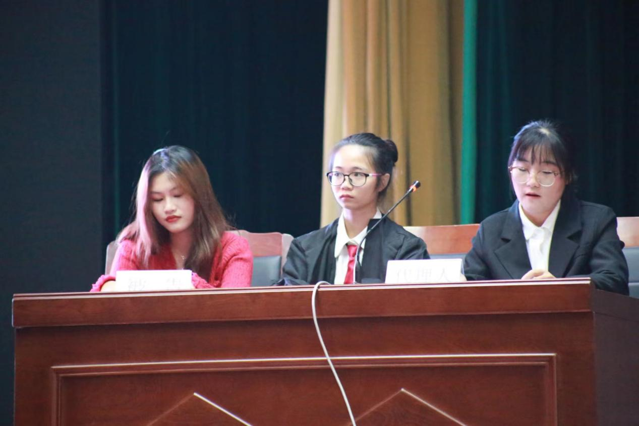 “全体起立!请审判长、审判员入庭……”,随着“审判长”敲响法槌,模拟法庭“庭审”正式开始。庭审中,同学们非常投入,审判长、审判员、当事人、诉讼代理人等角色,都生动形象。从庭前准备、法庭调查、法庭辩论、当事人最后陈述,到合议庭评议和当庭宣判,各个阶段环环相扣、井井有条,整个“庭审”过程严谨、规范,高度还原了真实法庭审理全过程。模拟法庭结束后,江西柴桑律师事务所赵江宇律师作为特邀嘉宾对模拟法庭活动进行评审并进行现场点评指导,深入浅出地讲解了相关法律知识。