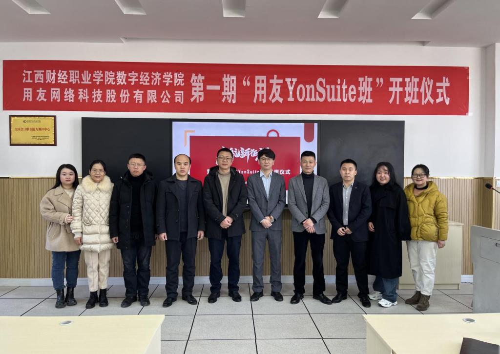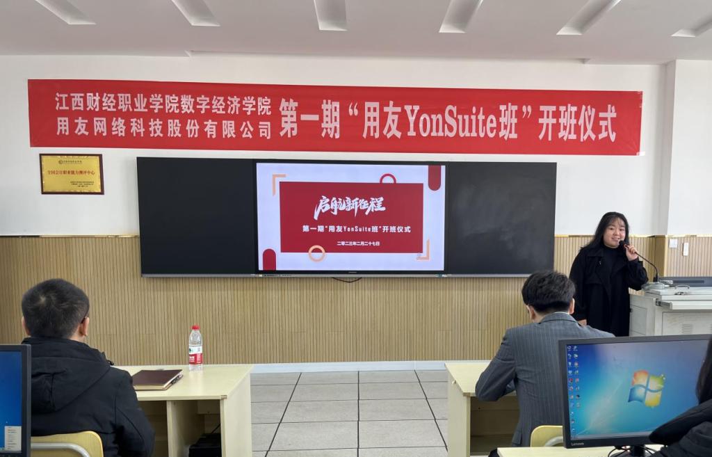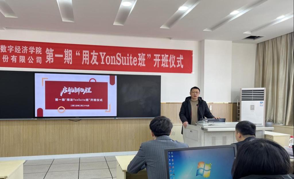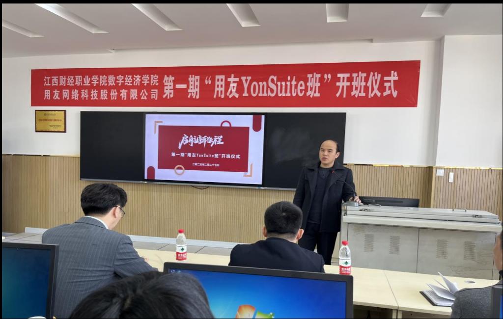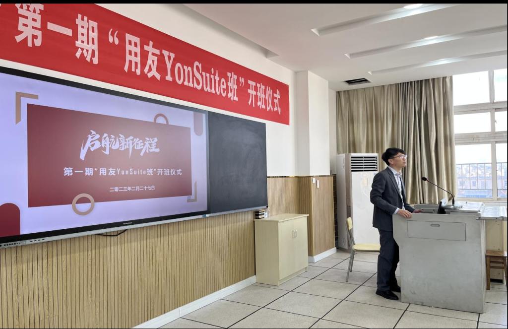 在就业压力日趋激烈的今天,开展校企合作式的培养学生是促进院校学生高质量就业的重要途径。2023年2月27日上午,beat365与用友新道科技有限公司校企合作的第一期“用友YonSuite班”开班仪式在教学楼7楼生产性实训基地举行。
