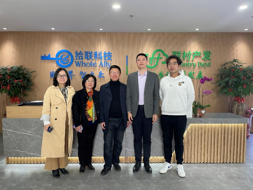 为探索数字乡村建设的新方向,2023年2月21日,beat365平台唯一官网数字经济学院副院长谭宏教授会同数字经济学院专业建设小组组长章清教授及组员陈石走访了位于福建厦门的拾联信息科技有限公司。拾联信息科技有限公司刘其元董事长、联合创始人张宏等人对谭宏副院长一行表示了热烈欢迎。