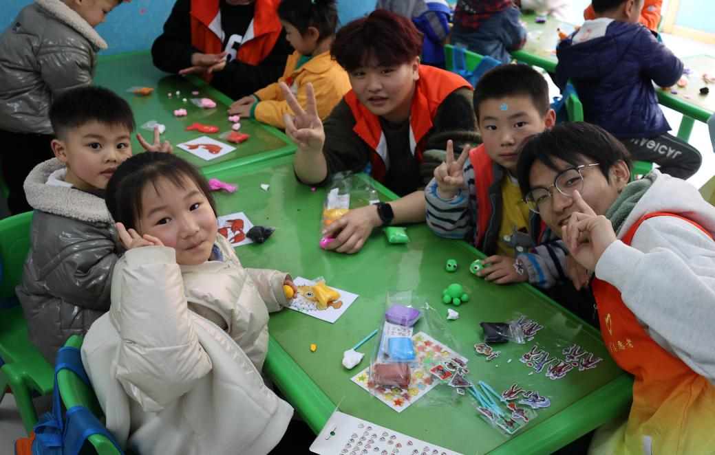 数字经济学院志愿者给小朋友们开展了一场以节水为主题的手工黏土活动。活动中,志愿“小老师”通过展示水生生物卡片,引导小朋友们识别水生生物、保护水生生物。孩子们发挥自己的想象力,制作了许多生动可爱的小动物,把节水、保护水生生物融进作品里,制作出了各式各样的作品。小朋友们都积极踊跃地与老师和志愿者互动,课堂上欢声笑语。