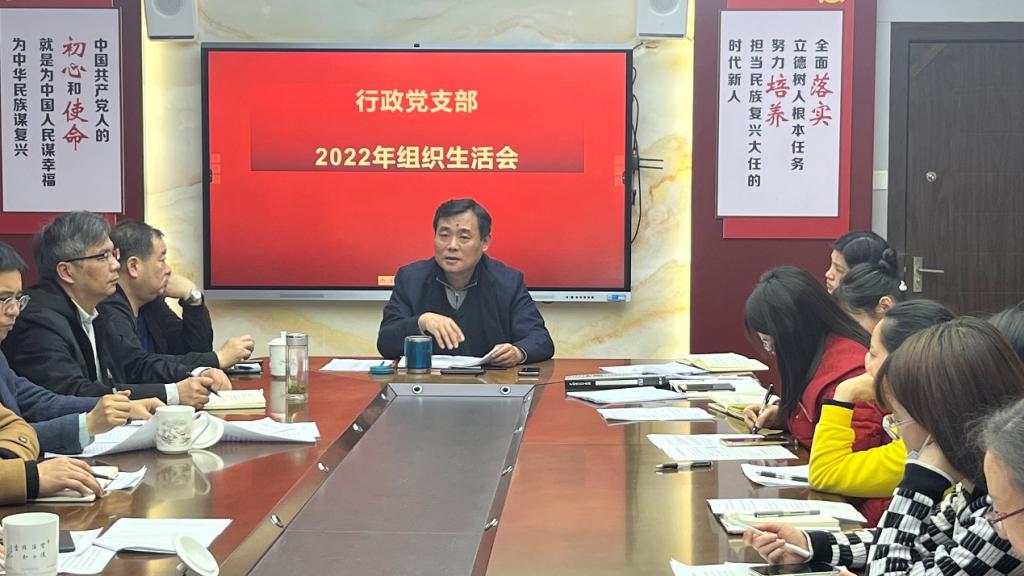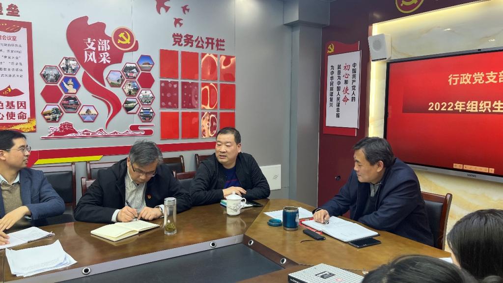 为深入学习贯彻党的二十大精神,坚持用习近平新时代中国特色社会主义思想凝心铸魂,根据市委组织部、市直机关工委有关部署,按照校党委关于召开2022年度基层党组织组织生活会和民主评议党员的工作要求,行政党支部高度重视,认真准备,于2023年3月27日晚召开组织生活会并开展民主评议党员。院纪委书记阙沪平、后勤资产管理与服务处处长张东海到会指导督导。